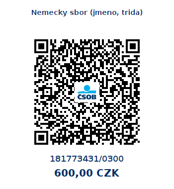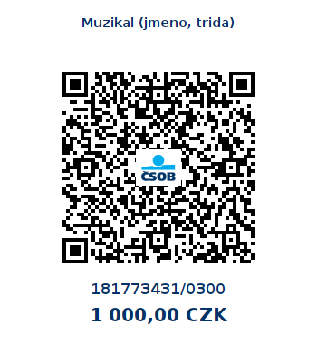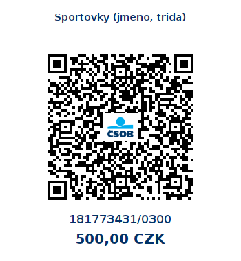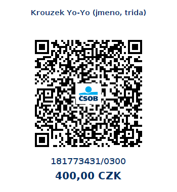 Platbu proveďte AŽ PO VYZVÁNÍ VYUČUJÍCÍM a potvrzení, že s kroužek skutečně otevře, v souhrnné výši za všechny kroužky na účet školy 181773431/0300 pod variabilním symbolem 700. K platbě uveďte jméno dítěte a třídu.