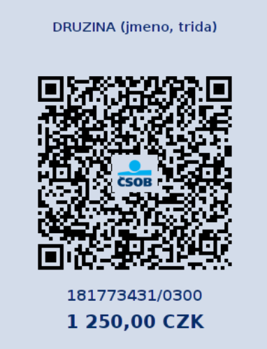 Úhrada vždy za celé pololetí, tedy 1250 Kč. Na první pololetí do 30.9.2025 a na druhé pololetí do 15.2.2026