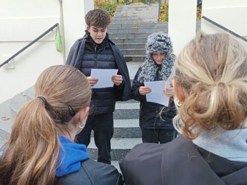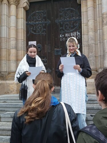 publikováno 16. 10. 2025Ve středu 15. 10. 2025 se žáci 8. B vypravili do Kladna na performativní procházku s názvem Projdi se Kladnem. Program byl zajištěn ve spolupráci se Sládečkovým vlastivědným muzeem.